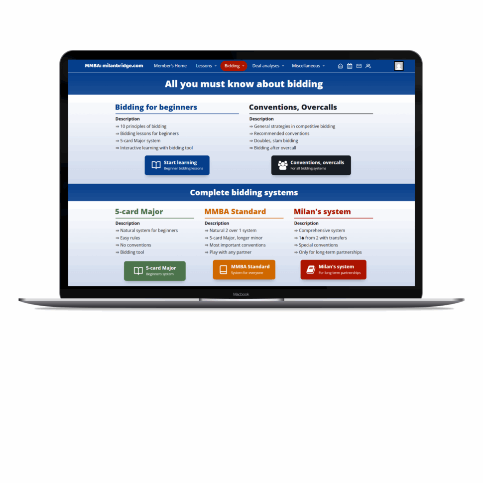 We charge a small fee for our members. Our full members gain access to all our lessons and teaching programs with no extra charge. You will get unlimited access and may study at your own pace. Learning Bridge has never been easier, more fun, and more accessible for everyone.