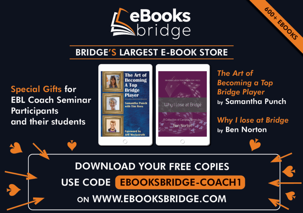 - Tournaments on Realbridge, Intobridge, Funbridge, BBO, and other platforms.